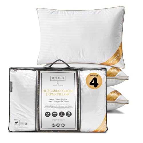 GC GAVENO CAVAILIA Hungarian Goose Down Pillow | Hypoallergenic Medium Neck Support Firm Pillow for Front & Back Side Sleeping With 100% Cotton Cover Bed | Pack of 4, 48x74 Cm
