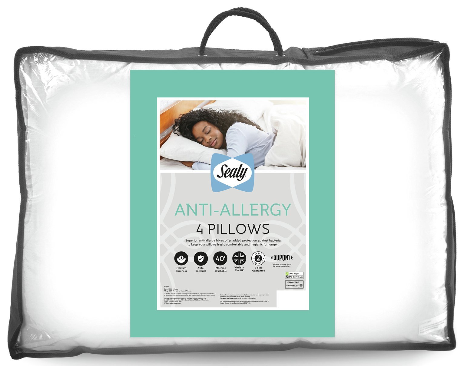 Sealy Anti-Allergy Medium Firm Pillow - 4 Pack