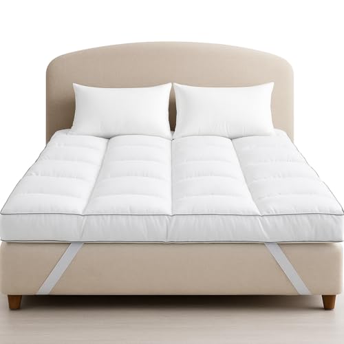 10cm Extra Thick Firm Single Mattress Topper - Box Stitched, Hotel Quality Quilted Toppers - Comfy Cloud Heavy Fill Back Support Pain Relief Fitted Bed Cover Strong Elastic Straps