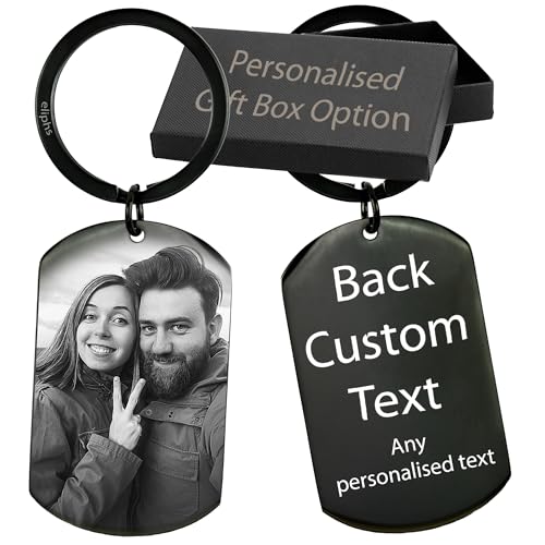 Eliphs Personalised Photo Engraved Keyring Mum Daddy Father Gift Dad Keychain from Daughter Custom Photo Keychain Birthday First Fathers Gift from Baby Engraved tag