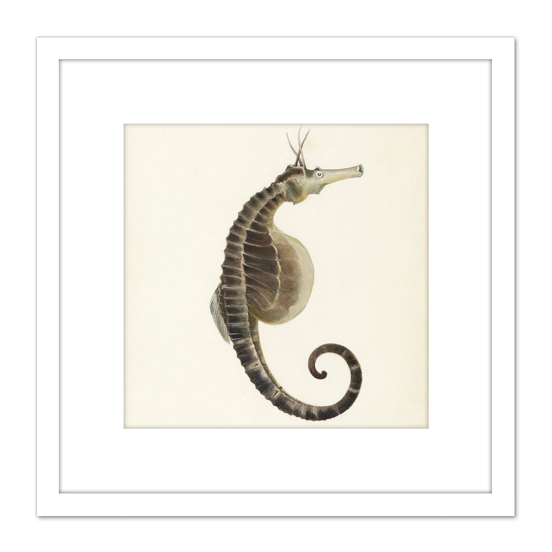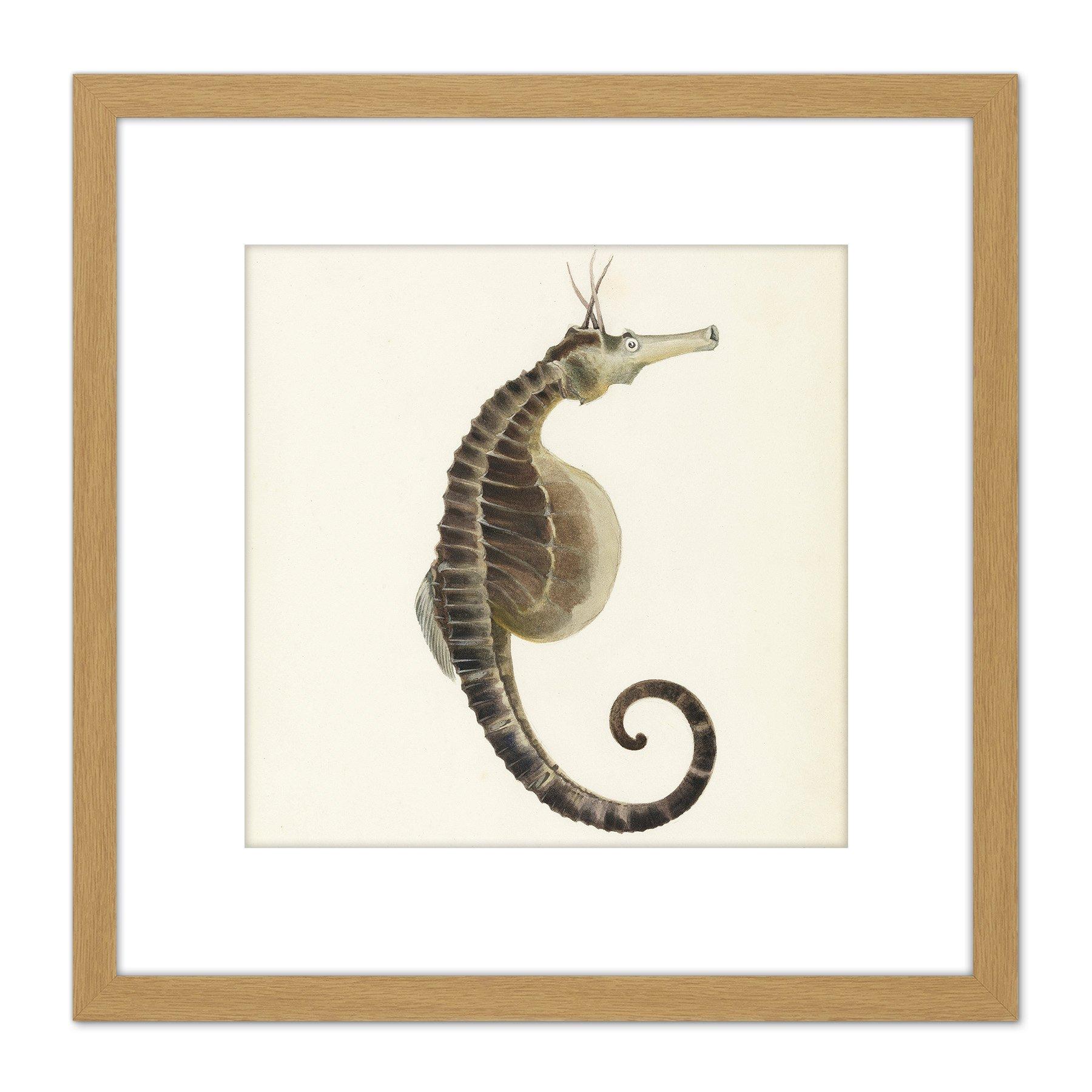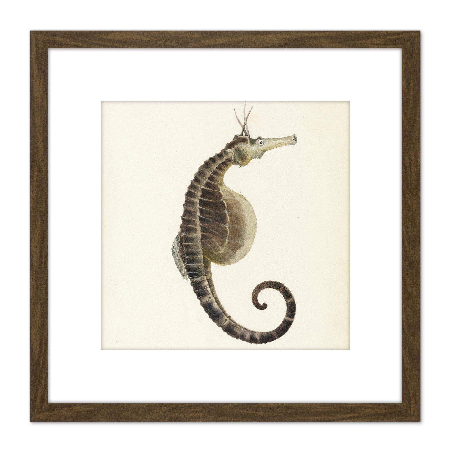 Gould Sea Horse Book Fish Illustration 8X8 Inch Square Wooden Framed Wall Art Print Picture with Mount
