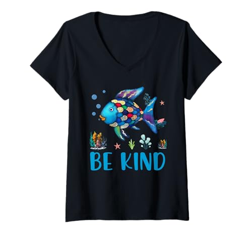 Womens Be Kind Rainbow Scale Fish Teacher Reading Book Toddler Kids V-Neck T-Shirt