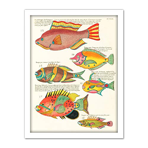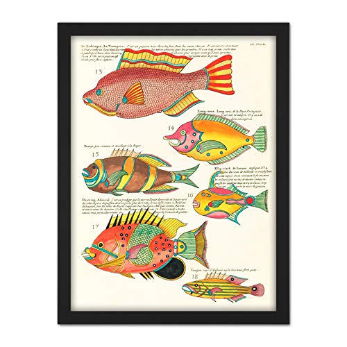 Artery8 Renard East Indian Fish Book Illustration Artwork Framed Wall Art Print 18X24 Inch