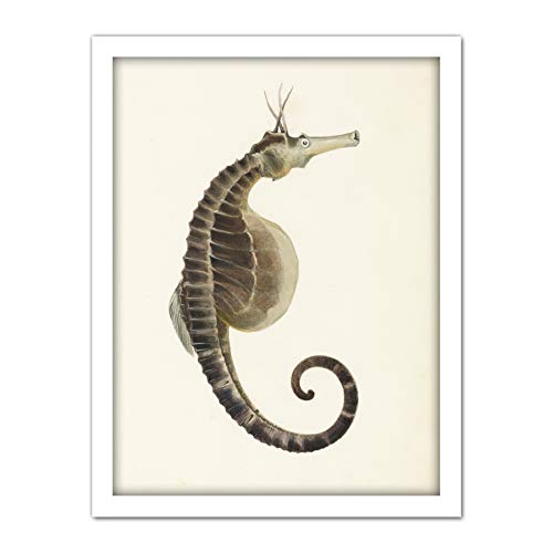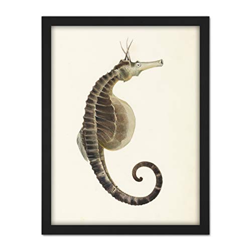 Artery8 Gould Sea Horse Book Fish Illustration Artwork Framed Wall Art Print 18X24 Inch