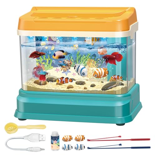 BEAHING Baby Aquarium Toy Educational Toy Fish Tank with Light Music Artificial Water Tank with 4 Magnetic Fish 2 Fishing Rod Net