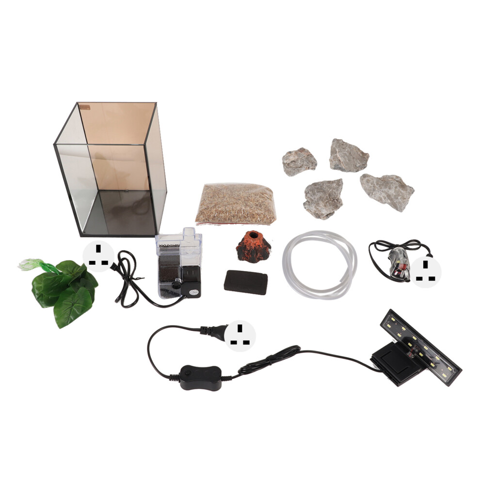 Aquarium Starter Kit Innovative Landscaping Silent 3 in 1 Fish Tank with Power Filter and LED Lighting Black UK Plug 220V