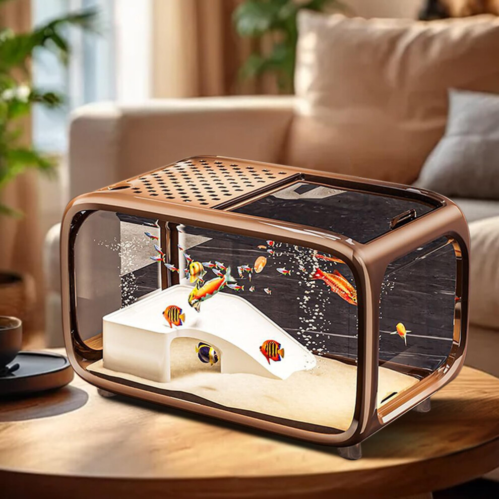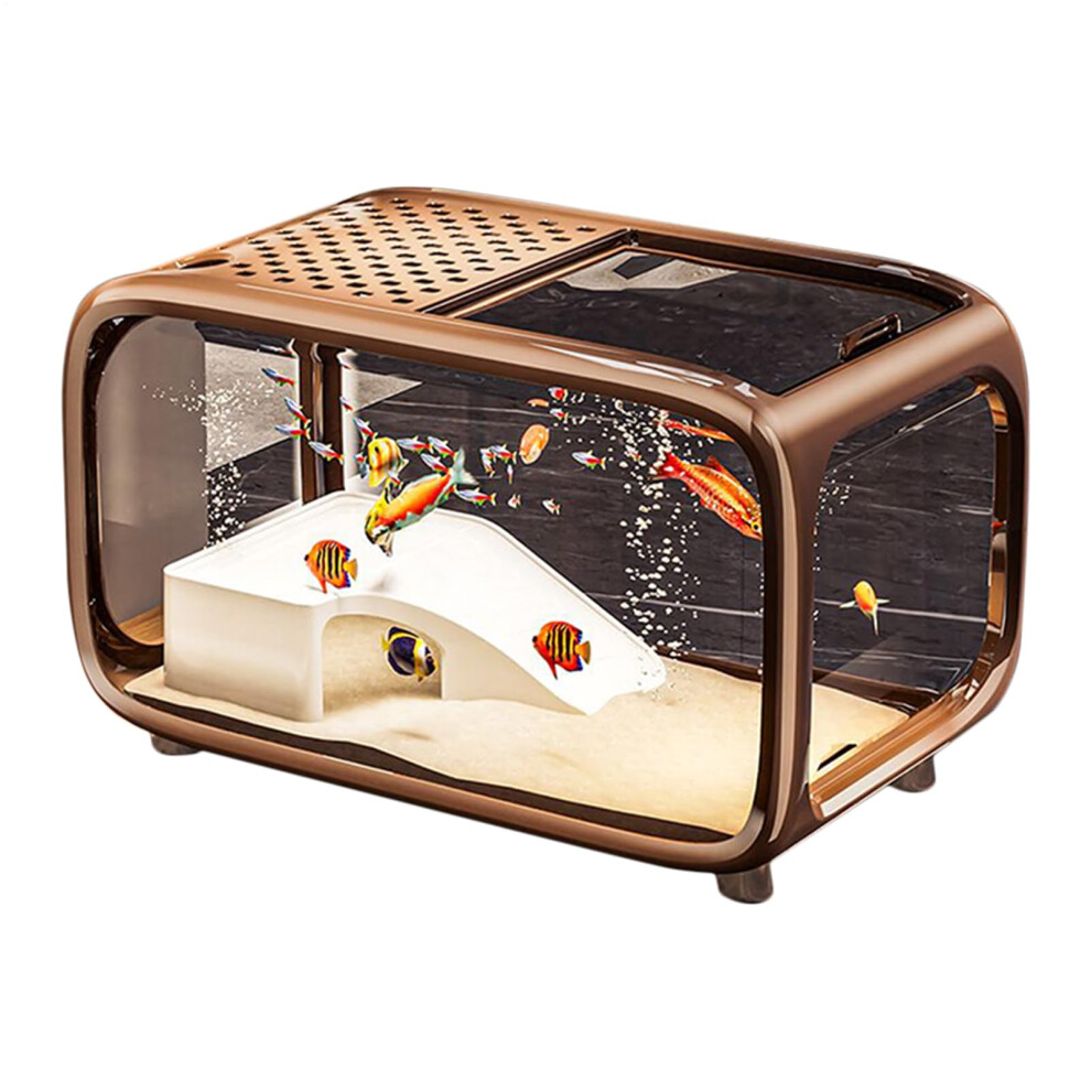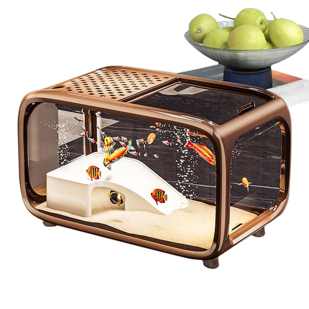 Fish Tank Transparent Acrylic 40x22.7x25.5cm Modern Desktop Aquarium Starter Kit With Lid And Feeding Hole Brown