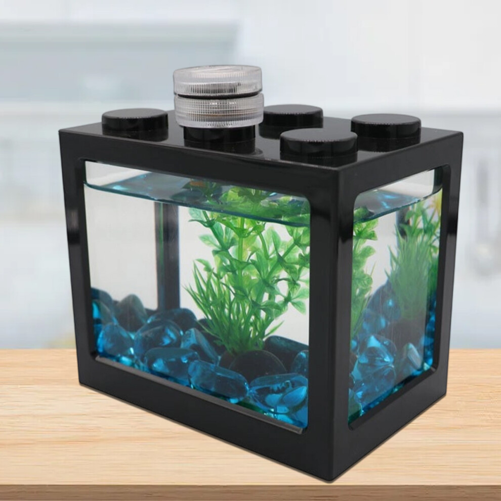 Desktop Aquarium Starter Kit, Stackable Mini Fish Tank Building Blocks Superimposed Fish Tank with LED Light, Acrylic Mini Aquarium Block Type