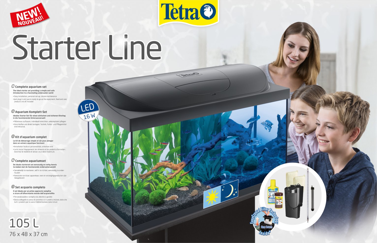 Aquarium Fish Tank & Cabinet with Complete Starter Kit - Black Tank & White Gravel