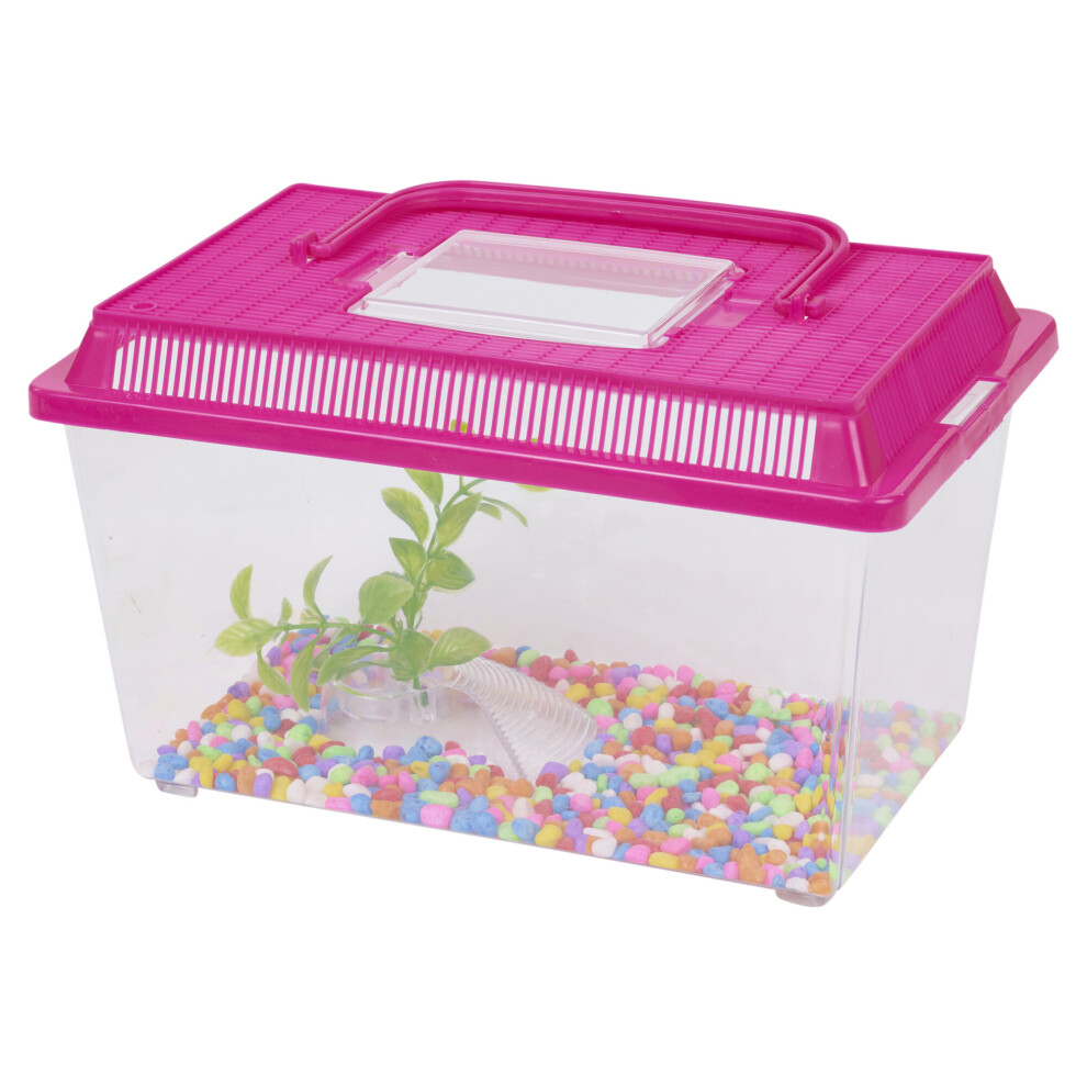 (Pink) Plastic Aquarium Fish Tank Starter Kit Goldfish