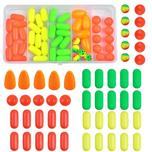 Fishing Foam Floats Beads Kit Pompano Fishing Rigs Floats Fishing Rig Making Kit for Surf Fishing Live Bait Rig Bottom Rig Spinner Making Float for Trout Catfish (75pcs/box)
