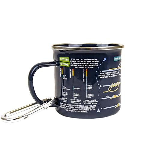 Gift Republic Fishing Guide Enamel Mug & Carabiner Outdoor Camping Mug Durable Metal Coffee Cup Fisherman's Gift Idea Hiking Kit Gardening Mug 500 ml
