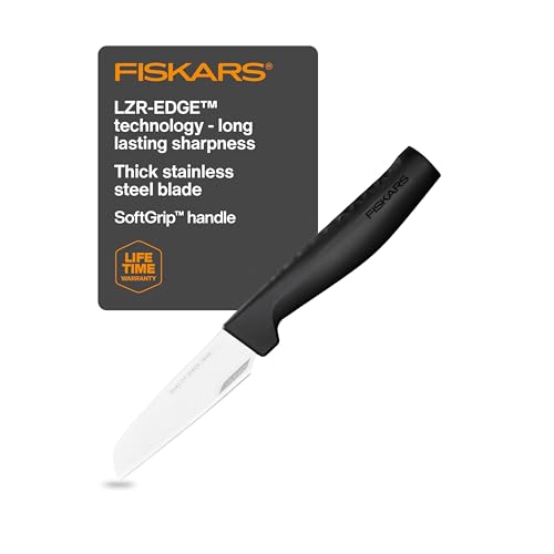 Fiskars Peeling Knife, Hard Edge, Elegant Design, Straight Blade, Total Length: 20.8 cm, Stainless Steel/Plastic, 1051777