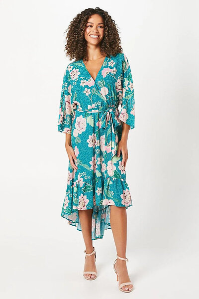 Sosandar Floral Print Fit & Flare Wrap Dress