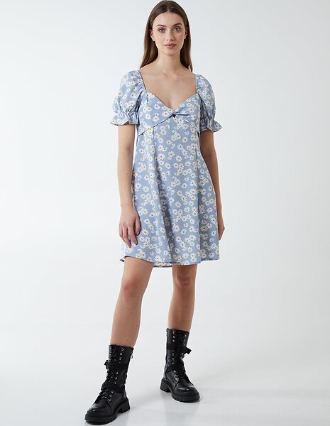 Puff Sleeve Fit And Flare Mini Dress