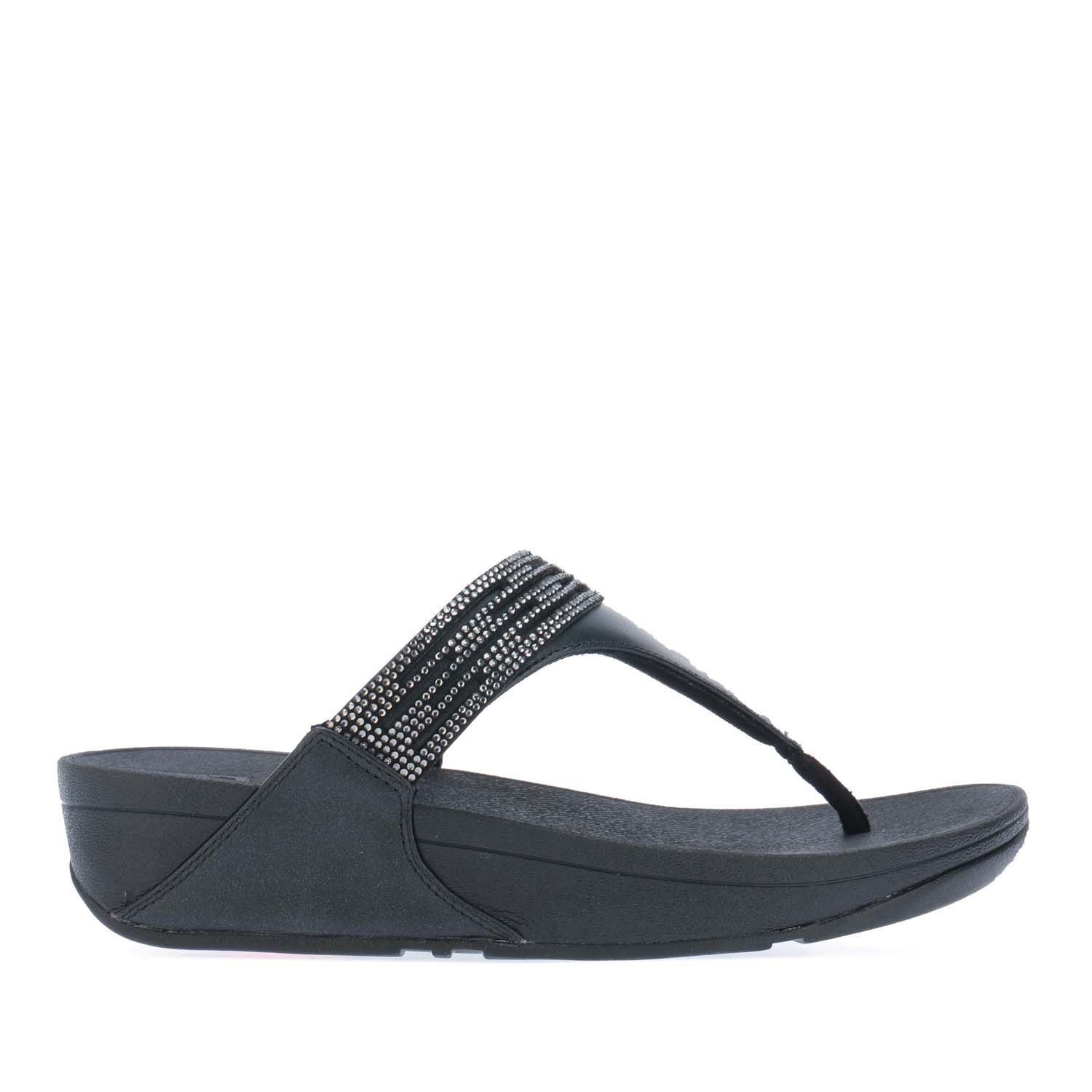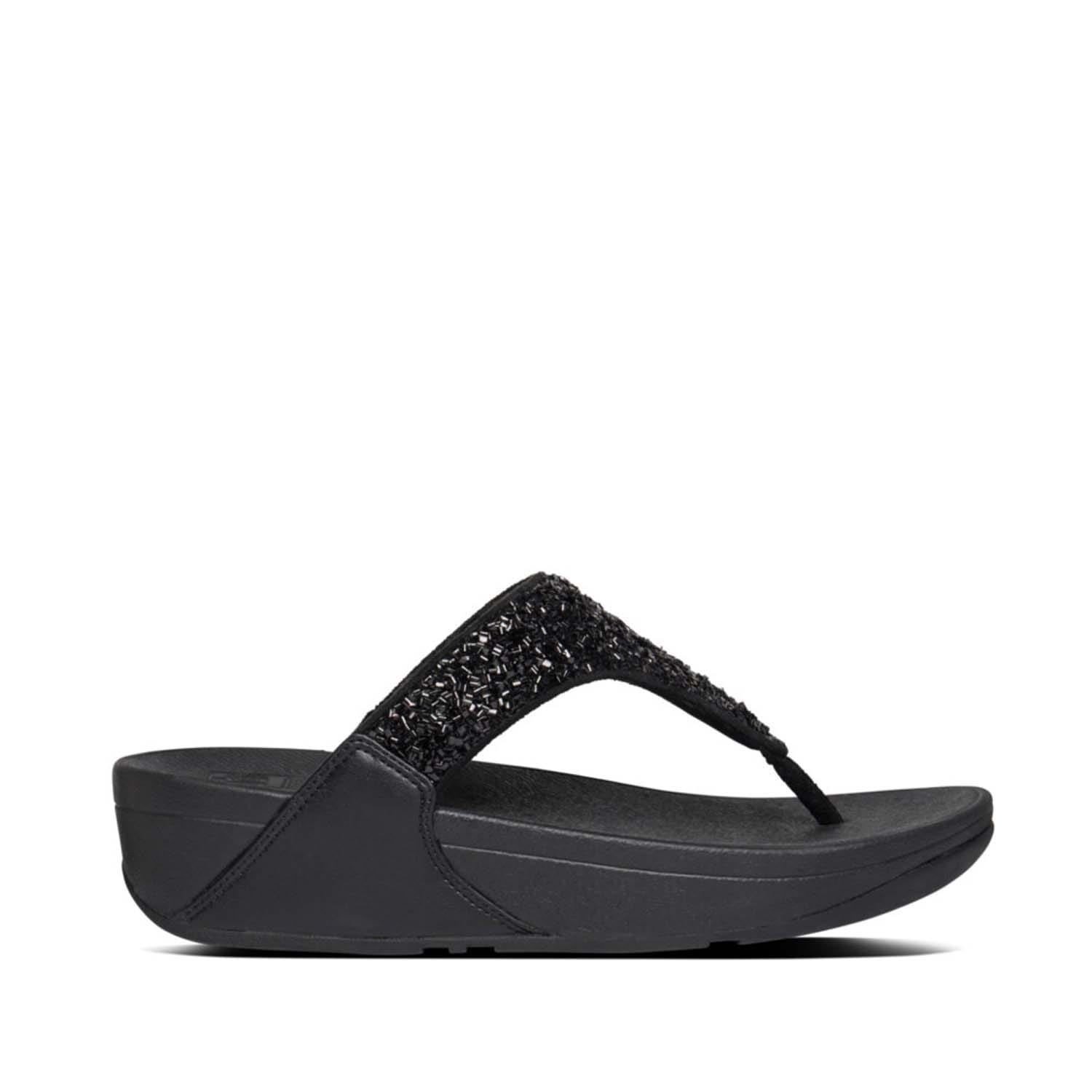 Women's Fit Flop Lulu Bejewelled Trim Toe-Post Sandals in Black