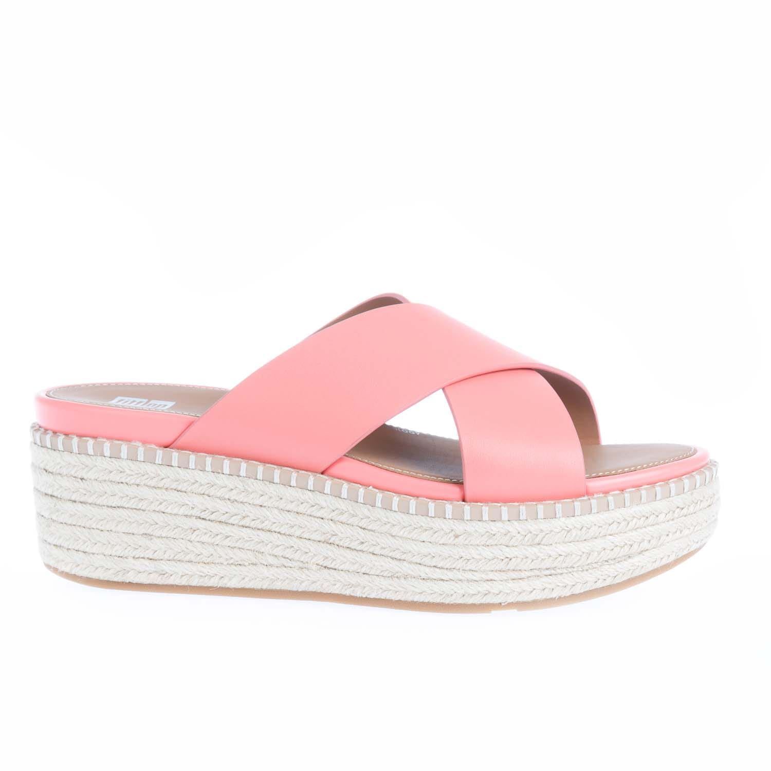 Women's Fit Flop Eloise Espadrille Wedge Cross Slide Sandals in Pink