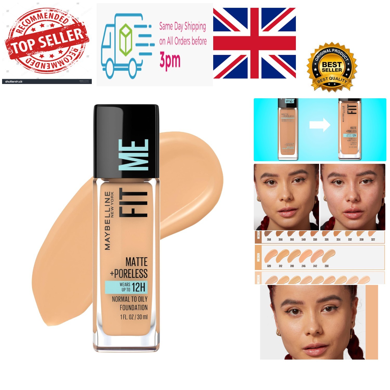 Maybelline Fit Me Foundation, Matte & Poreless, Full Coverage Blendable Normal