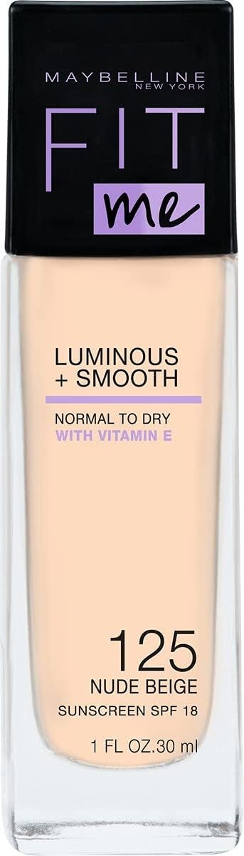 Maybelline New York Fit Me! Matte + Poreless Foundation Nude Beige [125] 1 oz (Pack of 3)