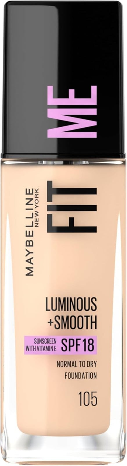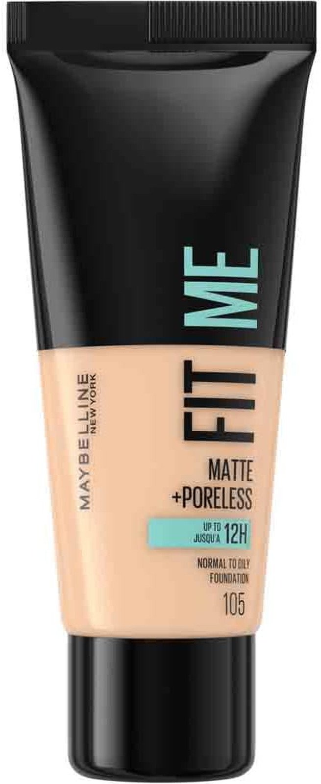 Maybelline Fit Me Foundation, Medium Coverage, Blendable With a Matte and Poreless Finish, For Normal to Oily Skin, Shade: 105 Natural Ivory, 30ml