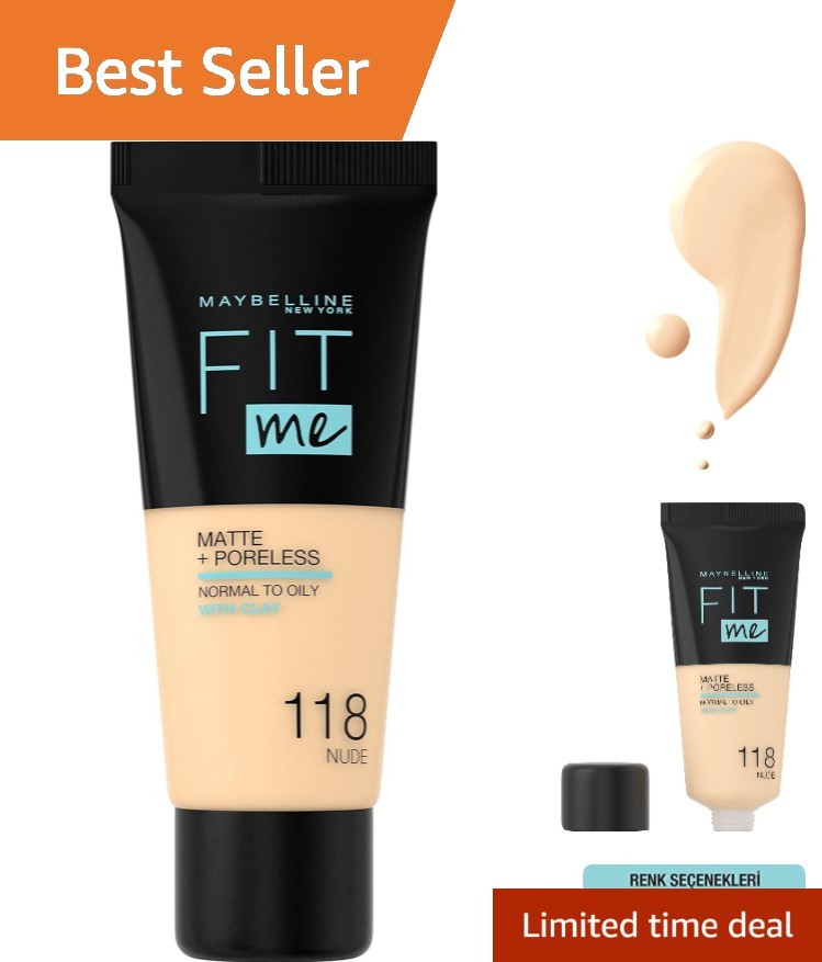 Maybelline Fit Me Foundation, Medium Coverage, Blendable With a Matte and Poreless Finish, For Normal to Oily Skin, Shade: 118 Light Beige, 30ml