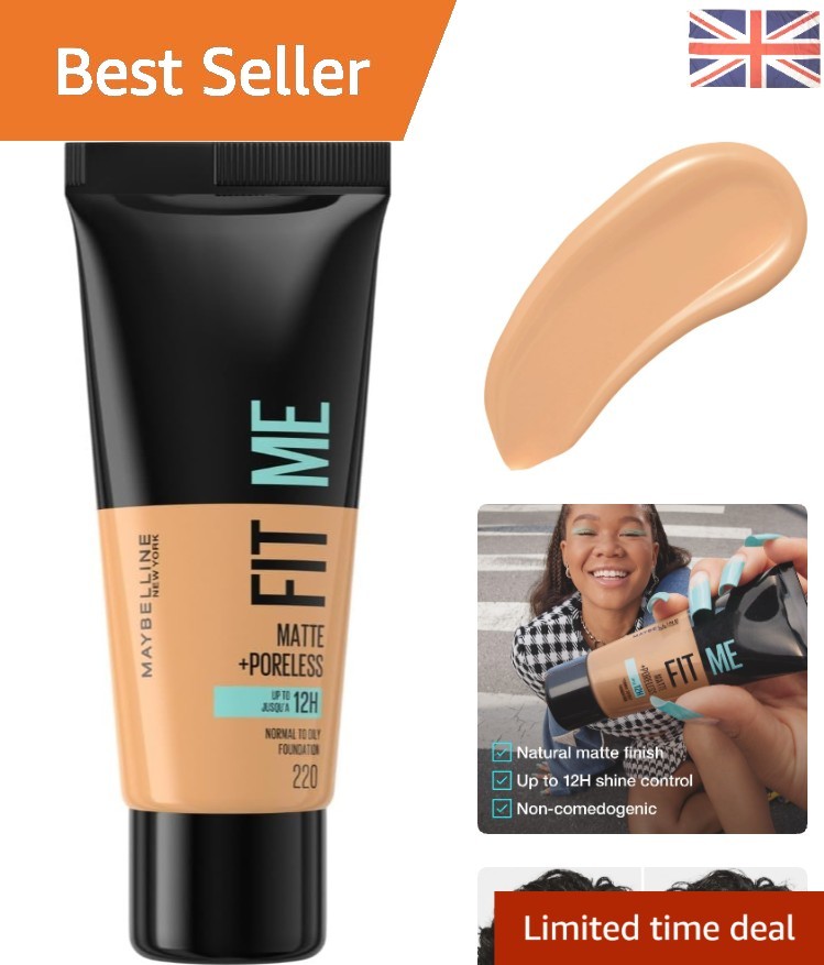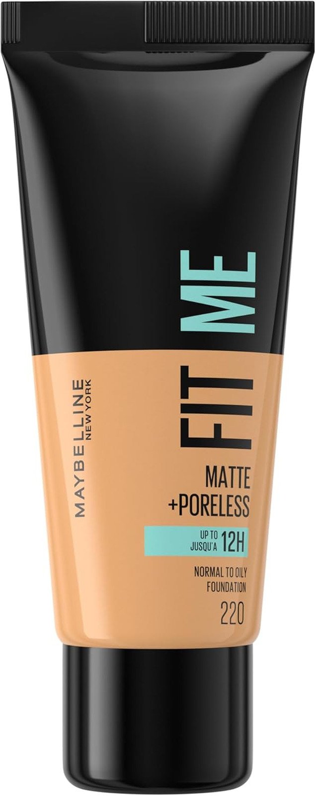 Maybelline Fit Me Foundation, Medium Coverage, Blendable With a Matte and Poreless Finish, For Normal to Oily Skin, Shade: 220 Natural Beige, 30ml