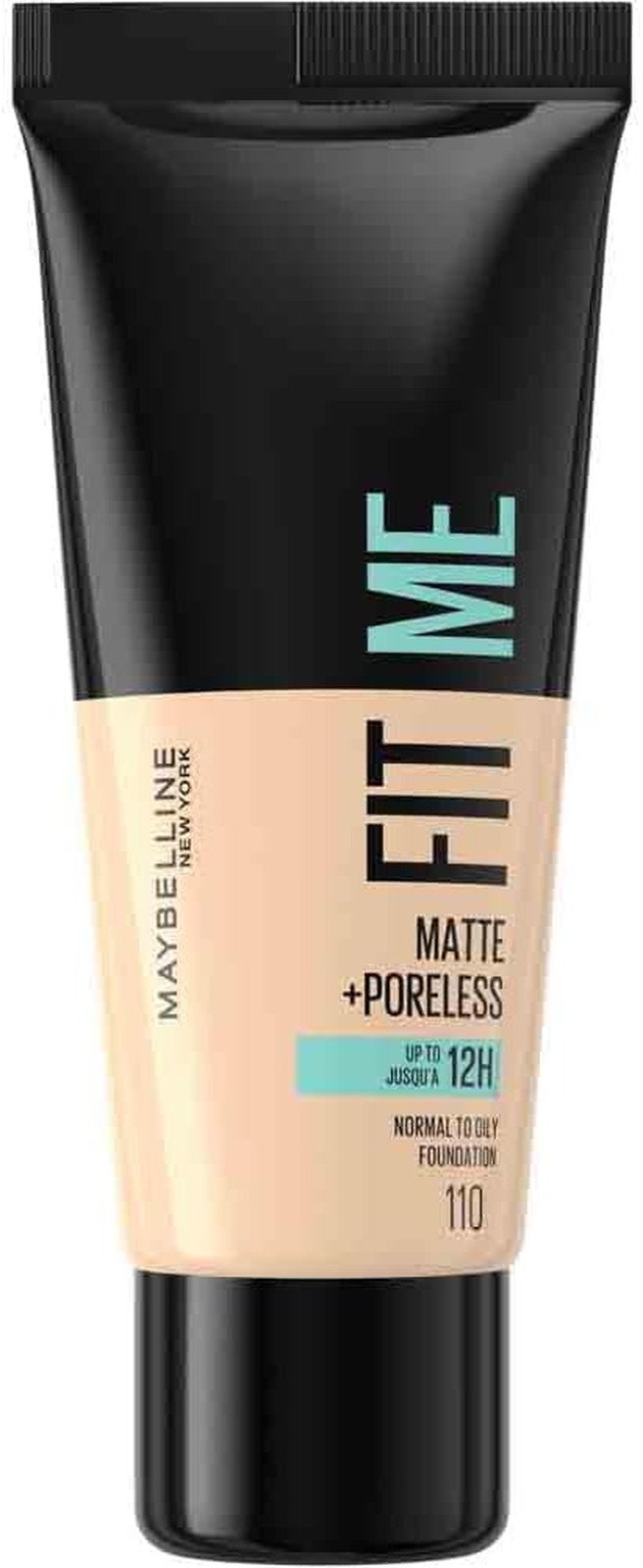 Maybelline Fit Me Foundation, Medium Coverage, Blendable With a Matte and Poreless Finish, For Normal to Oily Skin, Shade: 110 Porcelain, 30ml