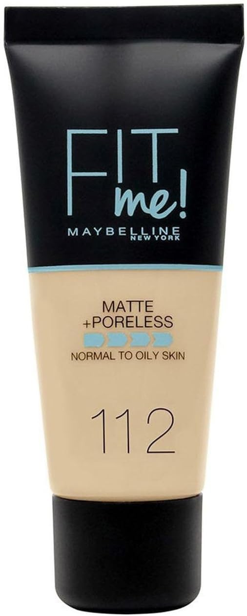 Maybelline Fit Me Foundation, Medium Coverage, Blendable With a Matte and Poreless Finish, For Normal to Oily Skin, Shade: 112 Soft Beige, 30ml