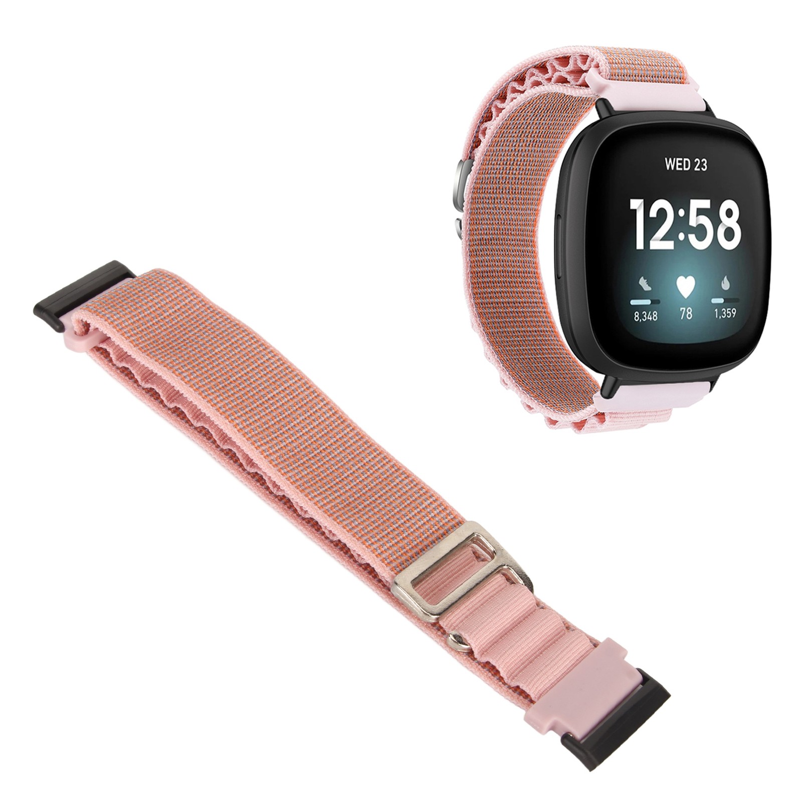 Stretch Woven Nylon Smartwatch Band Strap Replacement Accessory Fit for Fitbit Versa 4 3 Sense 2 White and Pink
