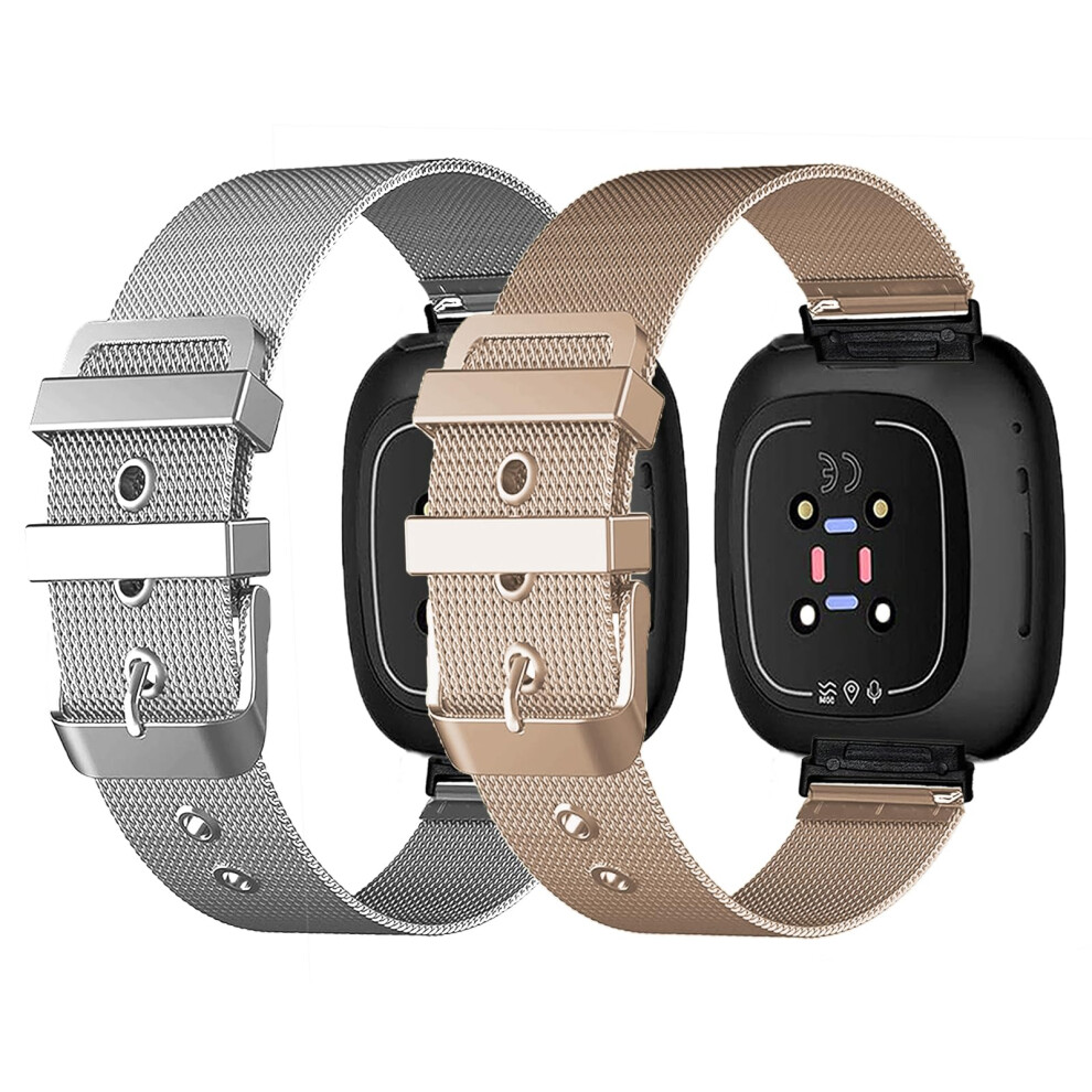 2 Pack Metal Bands Compatible with Fit bit Versa 3 /Fit bit Versa 4 /Fit bit Sense 2