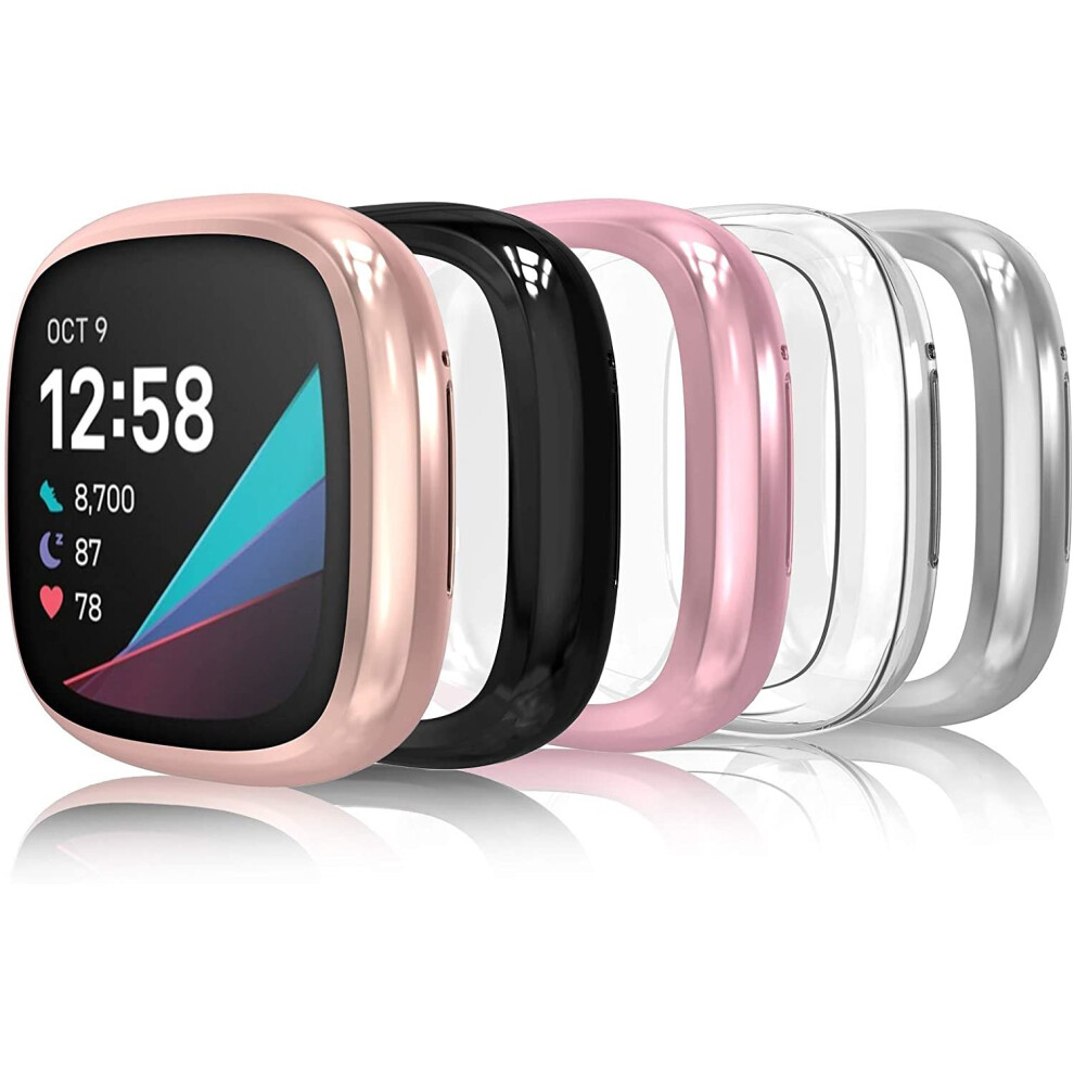 Hianjoo 5-PCS Screen Protectors Compatible with Fit Bit Versa 3/Versa Sense, Slim TPU Protective Case Cover Replacement for Fit Bit Versa 3/