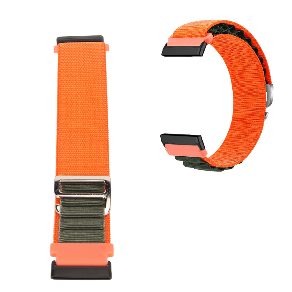 Nylon Smartwatch Band Fit for Versa 4/3 & Sense 2/ Sense, Orange & Green