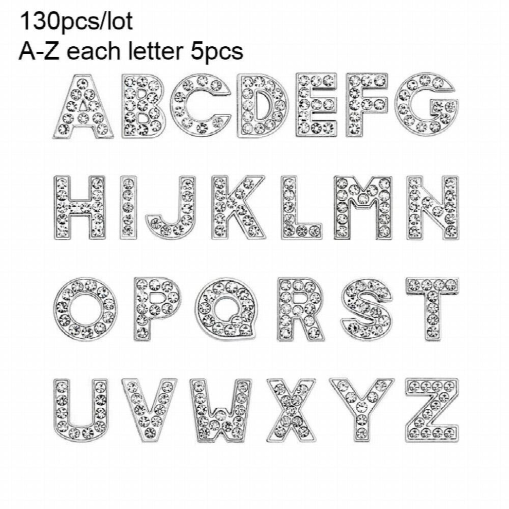 130 PCS mixed 8mm Slide Letters Full Rhinestone A-Z Initial Alphabet Charms Fit Wristband/Bracelet DIY Jewelry Accessories