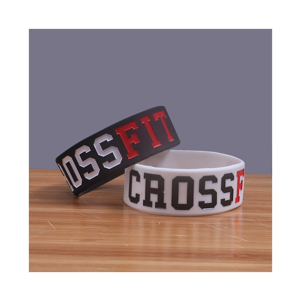 PBR183(1), Wide Black/White Cross Fit Bracelets Wristband Silicone Rubber Bracelets Give Away