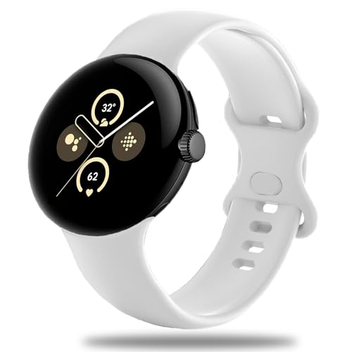 Miimall Strap for Google Pixel Watch 2/Pixel Watch Band, Quick Fit Flexible Wristband, Soft Silicone Sport Strap for Women Men, Adjustable Replacement Band for Google Pixel Watch 2/1- White