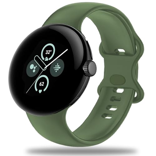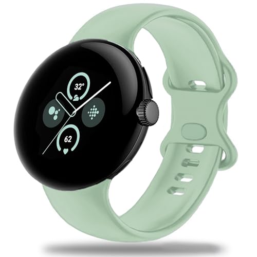 Miimall Strap for Google Pixel Watch 2/Pixel Watch Band, Quick Fit Flexible Wristband, Soft Silicone Sport Strap for Women Men, Adjustable Replacement Band for Google Pixel Watch 2/1-Green
