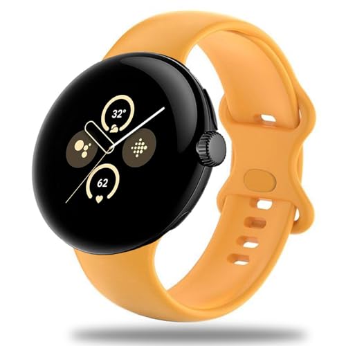 Miimall Strap for Google Pixel Watch 2/Pixel Watch Band, Quick Fit Flexible Wristband, Soft Silicone Sport Strap for Women Men, Adjustable Replacement Band for Google Pixel Watch 2/1-Yellow