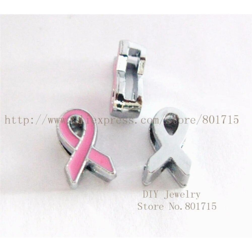 100pcs 8mm pink ribbon Slide Charm Fit Pet Collar Wristband key chain as