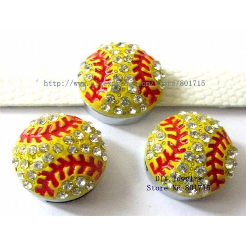 softball Internal Dia. 8mm slide Charms 10pcs zinc alloy and rhinestone Jewelry Findings fit 8mm wristband petcollar keychain