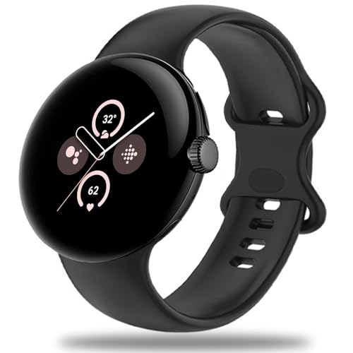 Miimall Strap for Google Pixel Watch 4/3 41mm, Pixel Watch 2/1 Band (Not for 45mm), Flexible Soft Silicone Sport Strap, Quick Fit Adjustable Replacement Wristband for Men Women- Black