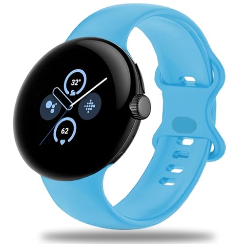 Miimall Strap for Google Pixel Watch 2/Pixel Watch Band, Quick Fit Flexible Wristband, Soft Silicone Sport Strap for Women Men, Adjustable Replacement Band for Google Pixel Watch 2/1-Sky Blue