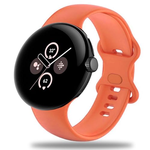 Miimall Strap for Google Pixel Watch 2/Pixel Watch Band, Quick Fit Flexible Wristband, Soft Silicone Sport Strap for Women Men, Adjustable Replacement Band for Google Pixel Watch 2/1- Orange