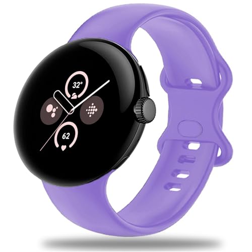 Miimall Strap for Google Pixel Watch 2/Pixel Watch Band, Quick Fit Flexible Wristband, Soft Silicone Sport Strap for Women Men, Adjustable Replacement Band for Google Pixel Watch 2/1-Purple