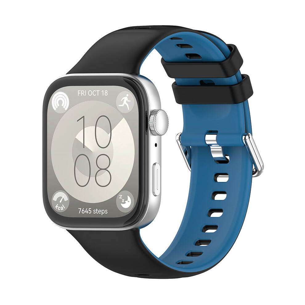 (Black-Blue) Watch Strap for HUAWEI Watch Fit3 Reversible Color Clash Watch Strap Silicone Bi-Color Strap Watch Band