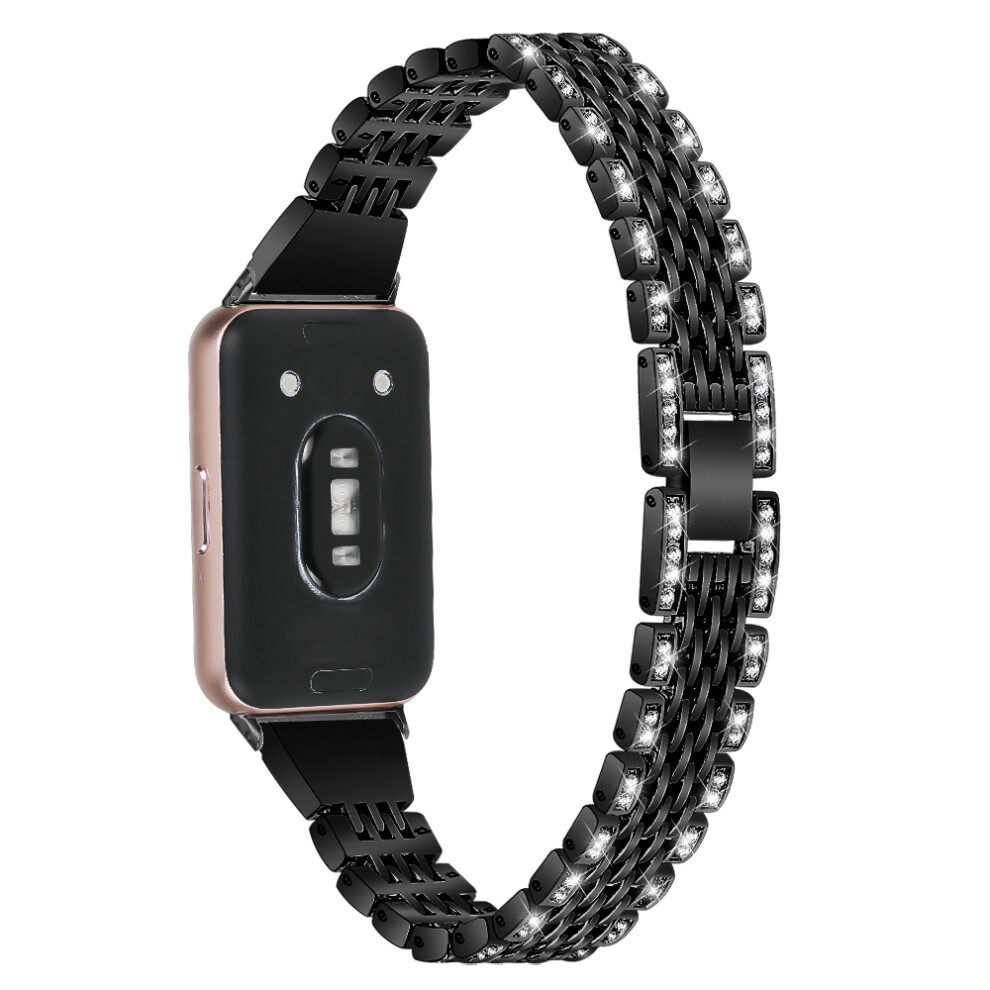 (Black) For Samsung Galaxy Fit3 SM-R390 Watch Band 5.2"-8.6" Adjustable Watch Strap with Shiny Rhinestone