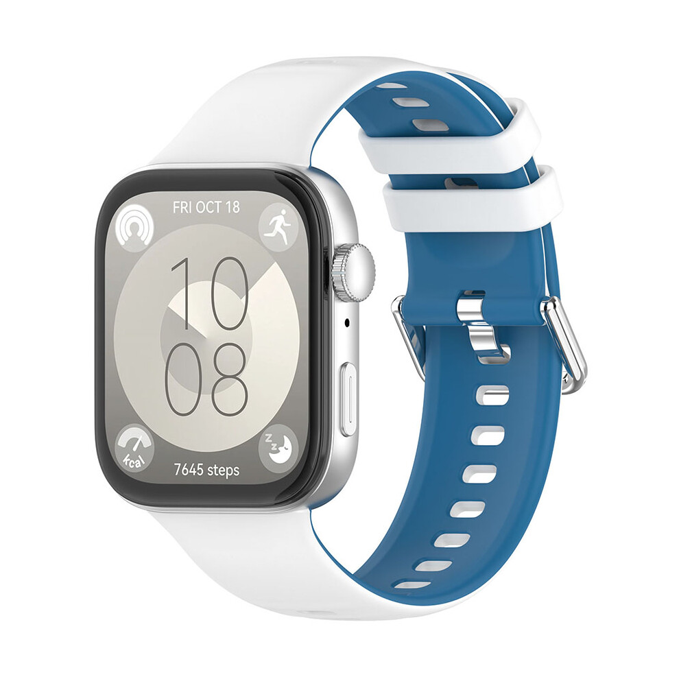 (White-Blue) Watch Strap for HUAWEI Watch Fit3 Reversible Color Clash Watch Strap Silicone Bi-Color Strap Watch Band