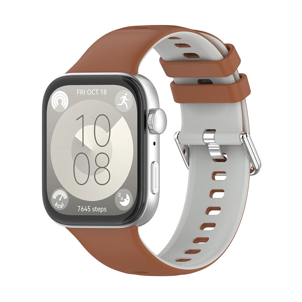 (Brown-Gray) Watch Strap for HUAWEI Watch Fit3 Reversible Color Clash Watch Strap Silicone Bi-Color Strap Watch Band