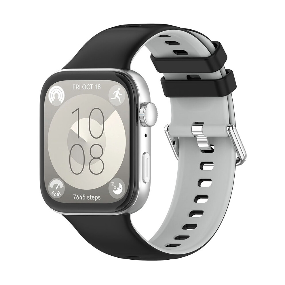 (Black-Gray) Watch Strap for HUAWEI Watch Fit3 Reversible Color Clash Watch Strap Silicone Bi-Color Strap Watch Band
