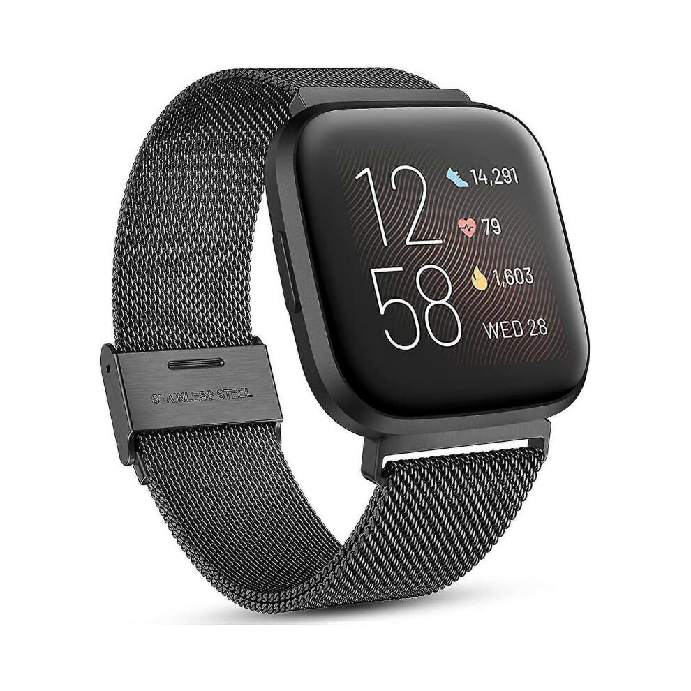 (Black) Fitbit Versa/fitbit Versa 2 Band For Women Men, Adjustable Stainless