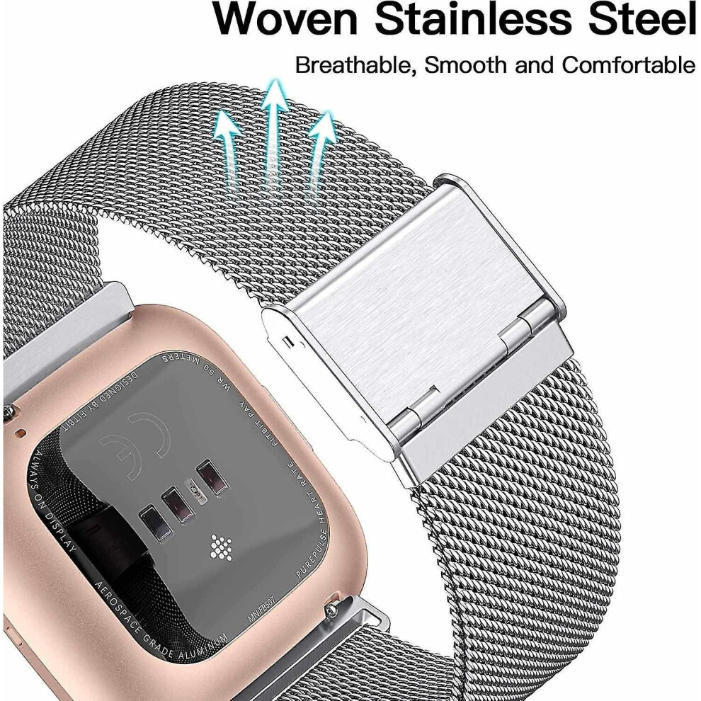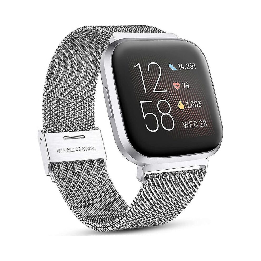 (Silver) Fitbit Versa/fitbit Versa 2 Band For Women Men, Adjustable Stainless